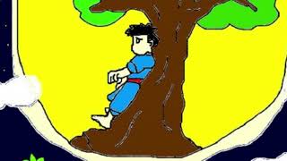 Khi đó, Cuội vừa gánh củi về đến cổng, nhìn thấy sự việc, trong khi người vợ đang đứng dưới gốc cây hô hoán ầm ĩ, Cuội hiểu ra sự tình, liền ba chân bốn cẳng chạy lại, cố níu giữ gốc cây.